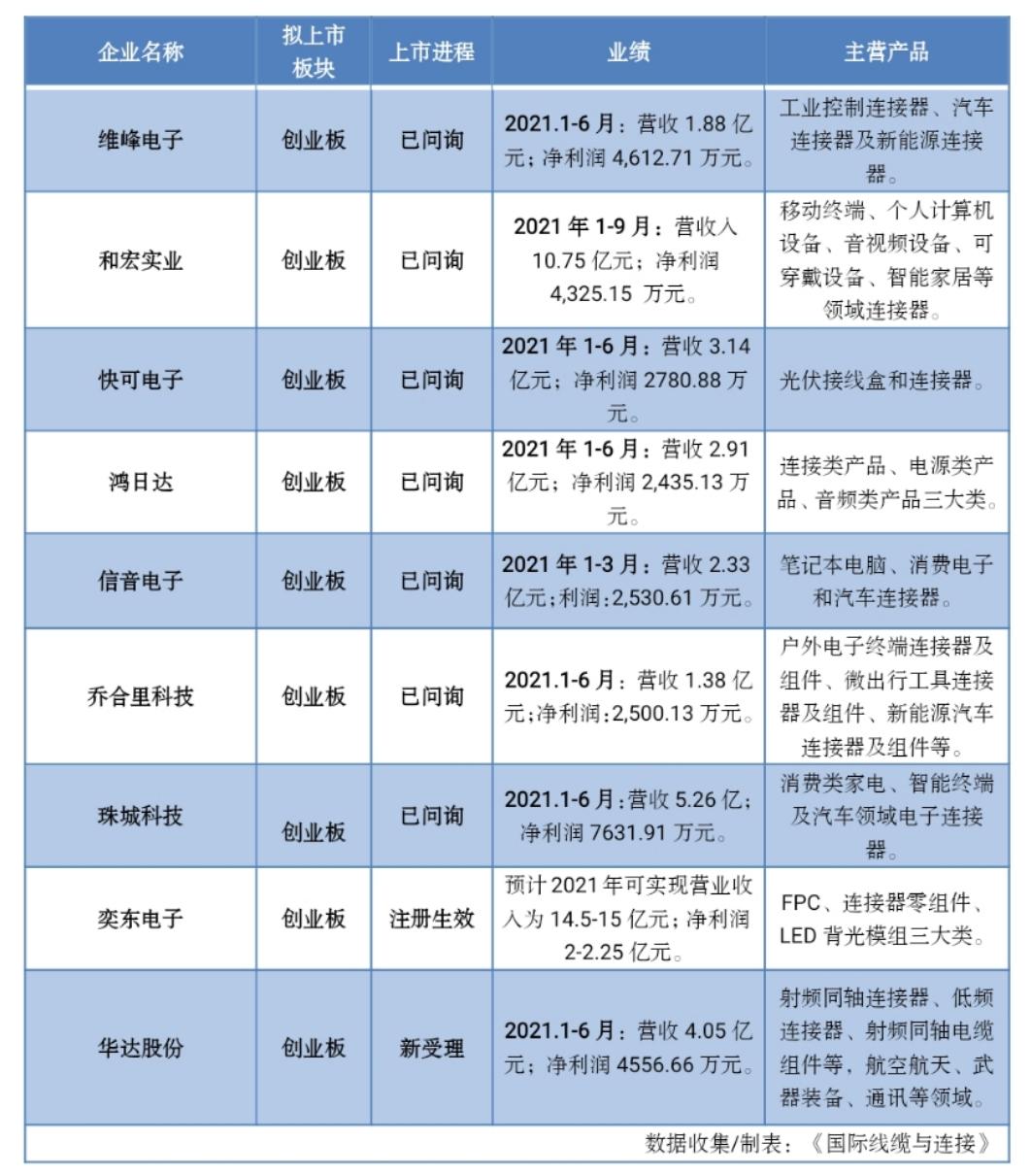 同時(shí),還有多家連接器企業(yè)也已開啟上市征程。